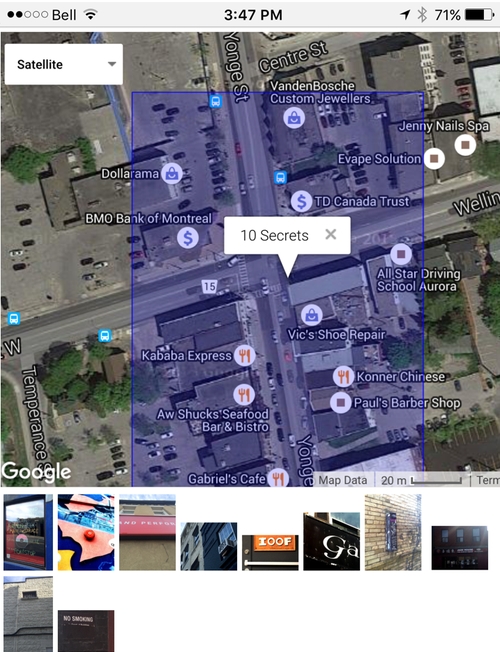 The web app displays a map that you use to find target areas to search. To find areas that have secrets, you scroll and zoom the map until at least one secret is revealed. The clues for these secrets will appear. You won't be able to solve the mysteries until you are in their vicinity. Visit the area then use the map for final details before solving.